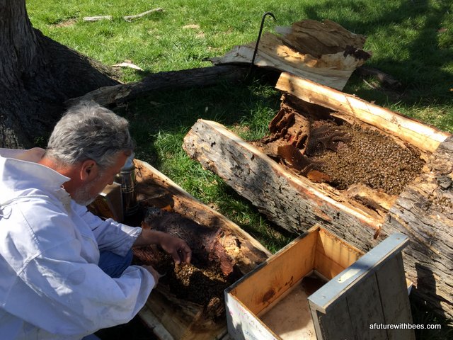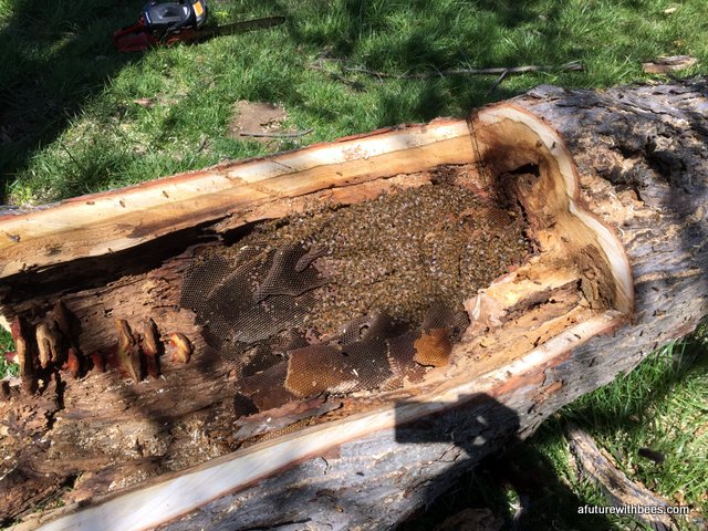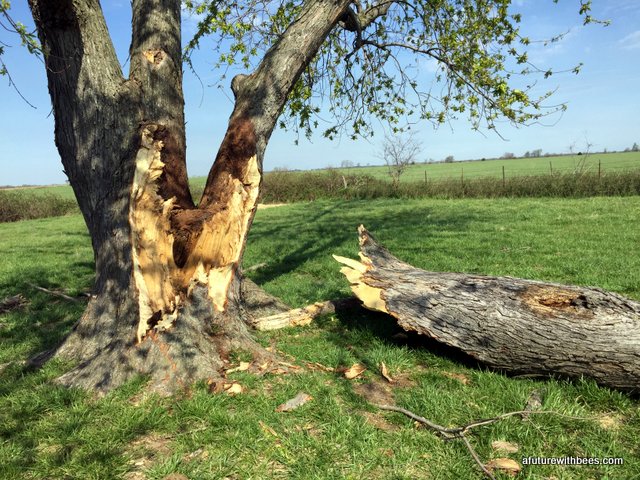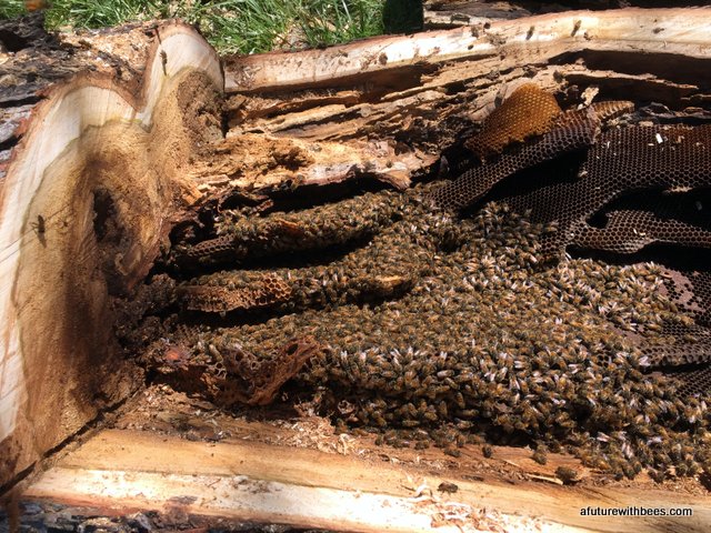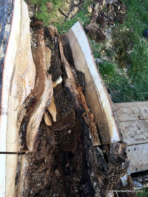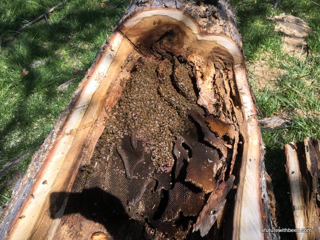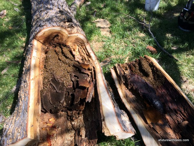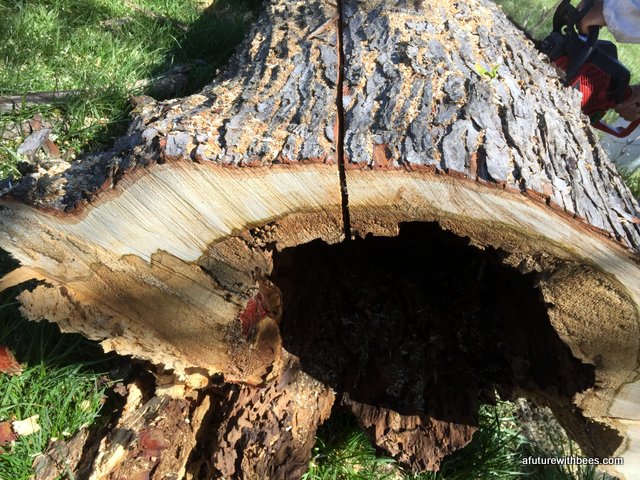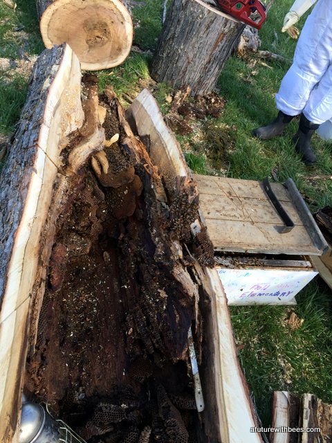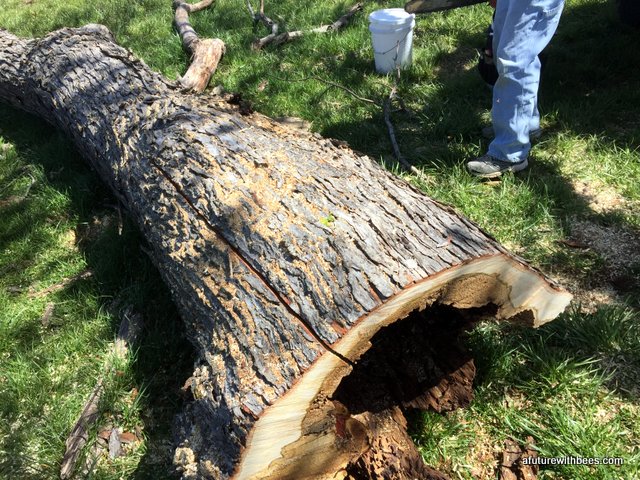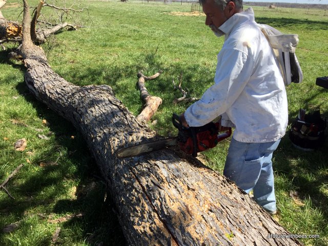 A local farmer in Lockwood Missouri had a bee tree (of over 10 years) that broke during a recent wind storm. Lucky for us he wanted to save the bees and gave a local Conservation Dept friend a call. The following gallery shows our steps through saving this swarm on a cool day in April (wind was brutal). So far the hive is doing great with 3 deeps on it already. We want to save these great genetics.